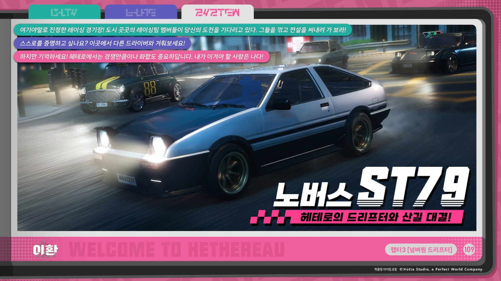 스스로를 증명하고 싶나요? 이곳에서 다른 드라이버와 겨뤄보세요! — 헤테로 완전 정복 매뉴얼, 챕터3 [넘버원 드리프터] P109 — 안녕하세요, 헤테로 시티에 오신 것을 환영합니다! — 공식 사이트 사전 예약>> 지금 예약하기