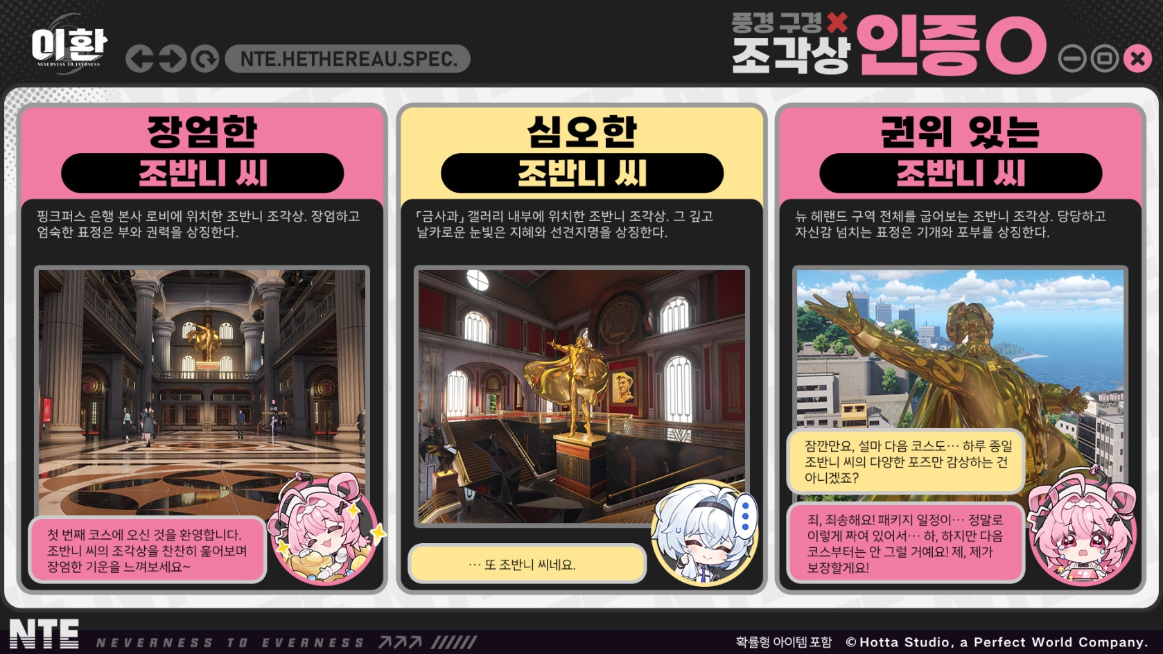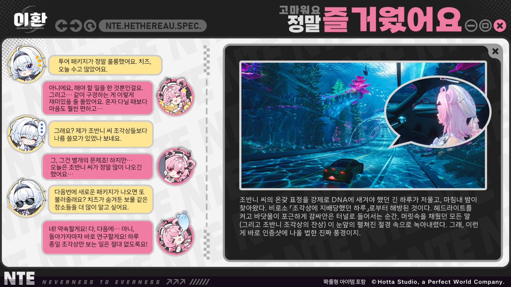 헤테로 시티에서 가장 풍요롭고, 가장 앞서가며, 가장 핫한 곳! 「뉴 헤랜드 구역」에 오신 것을 환영합니다! VIP 고객님이라면 누구나 이곳의 품격을 온전히 누리실 수 있도록 최선을 다하겠습니다. 자, 잠시만요! 실례합니다… <이환> 4월 29일 전 플랫폼 동시 출시! 지금 바로 예약하세요 >>