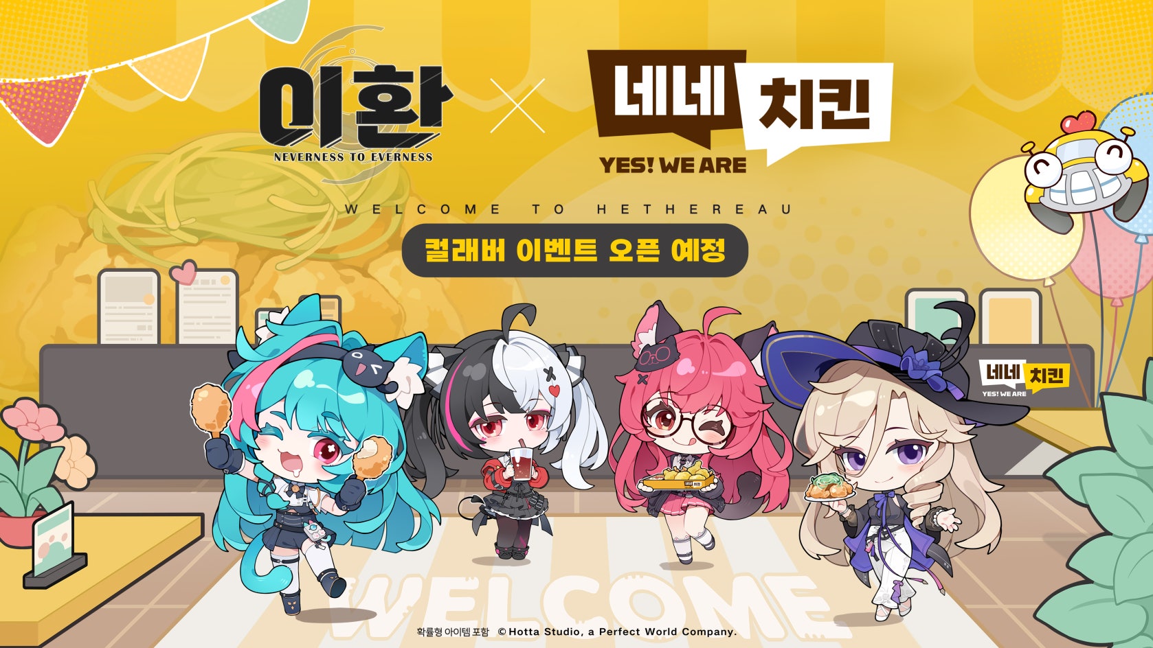 거부할 수 없는 바삭함의 유혹!🐔 ✦이환 X 네네치킨✦ 컬래버 소식을 공개합니다! 온라인뿐만 아니라 다가오는 홍대 오프라인 행사에서도 네네치킨을 만나볼 수 있으니, 감정사님의 많은 관심과 응원 부탁 드립니다! 🎁 <이환> 4월 29일 전 플랫폼 동시 출시! 지금 바로 예약하세요 >>https://nte.onelink.me/RX86/ntesnsnv